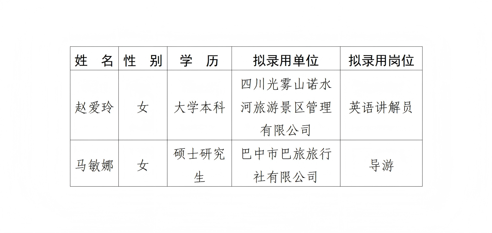 根據(jù)市委組織部《四川省巴中市2025年下半年引進(jìn)高層次人才和急需緊缺專業(yè)人才公告》相關(guān)要求,通過(guò)報(bào)名、資格審查、考試考核、體檢及背調(diào)等程序,現(xiàn)將擬錄用人員及崗位情況予以公示。公示時(shí)間為5個(gè)工作日(2025年12月9日至12月15日止)。公示期間,如有異議,請(qǐng)通過(guò)以下方式反映: